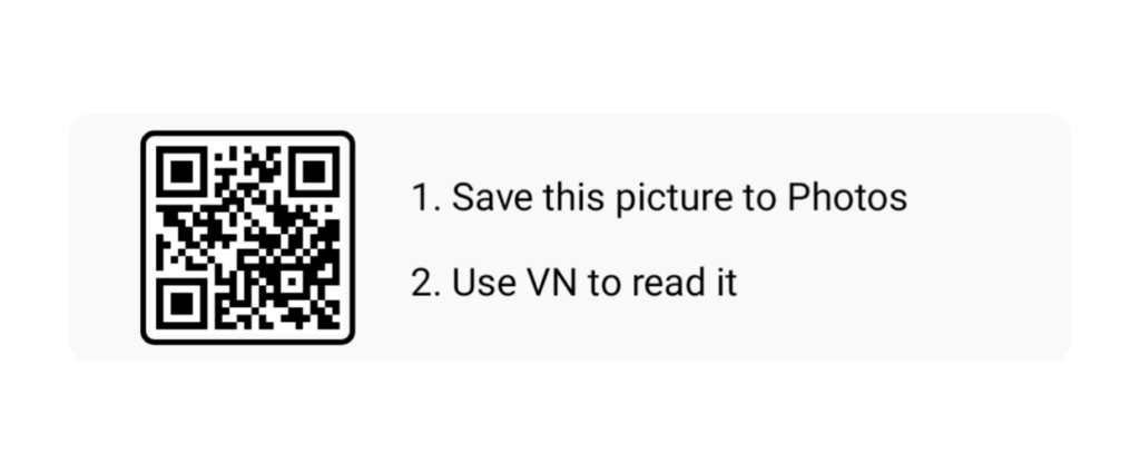 Now let’s see how you will create a video. We need to open the vn app. After opening the app, a scan option will appear in the top corner, click there. And you need to add the qr code that you downloaded. After adding, you will see the download option, click there and download the template. Now we need to add the image or video that we have. Then click the next option. And your video will be ready. After you’ve made the video, you’ll need to export it.