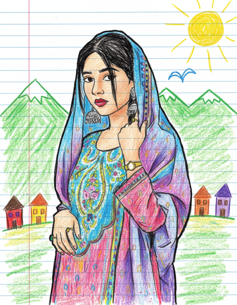 PROMPT:- Create a charming crayon-style illustration based on the reference image. Ensuring that the face shape, skin tone, hairstyle, expression, and clothing remain true to the original photo. Reinterpret these features with rough, uneven strokes and bold outlines. Using vibrant colors and playful textures reminiscent of a child’s crayon work. For the background, include green crayon-drawn mountains, a bright yellow sun, an “M”-shaped bird, and whimsical, colorful houses sketched in a scribble style. Position the artwork on blue lined paper, accented by a single red vertical line along the edge. While keeping the person’s proportions intact, simplify the details to evoke a more childlike and caricatured appearance, adding some scribbles or imperfections to enhance the spontaneous and playful feel of the drawing.